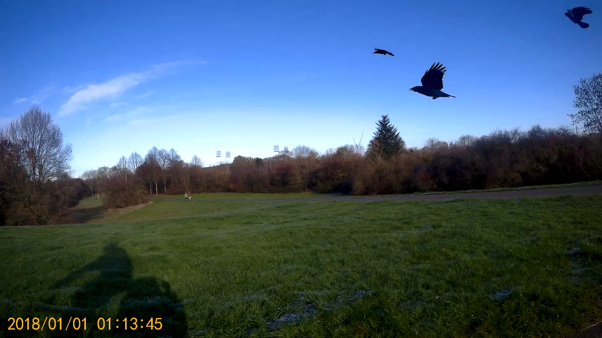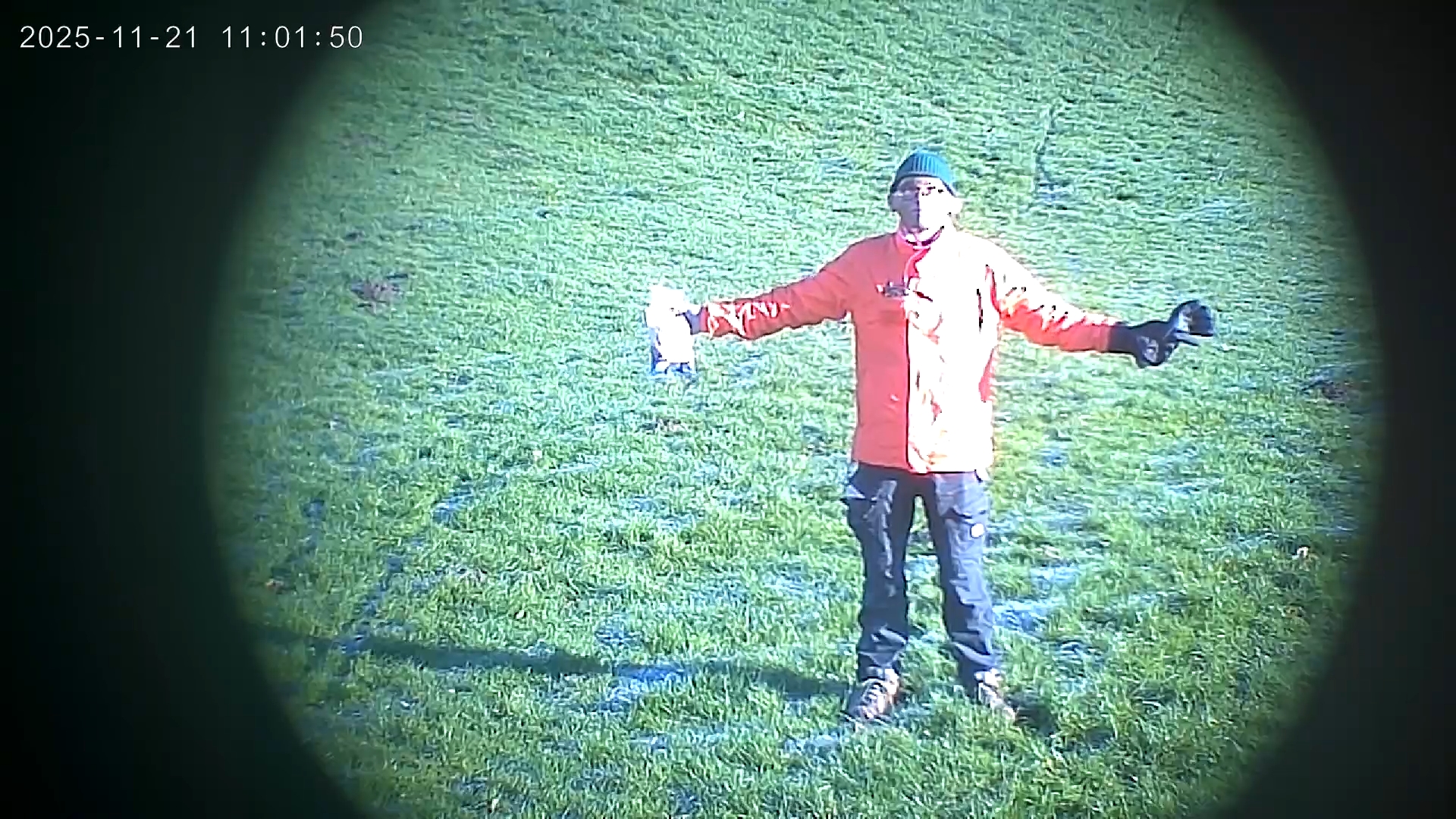 I, via an earpiece, choreographed him live as he ventured to the spot where I usually fed the crows. The Visitor wore a body camera, and a CCTV camera was mounted nearby surveilling the Visitor’s actions. Across the Werdersee lake 150 meters away, an audience for the work gathered and attempted to observe the Visitor’s encounter from a viewing area along the deich. Two artificial rocks with screens embedded in them were be placed in the viewing area and streamed the live footage from the bodycam of the Visitor and the CCTV camera. Monoculars were also available at the viewing area to provide, along with the livestreams, several imperfect forms of observation to project onto the Visitor. Simultaneously, my choreographic directions to the Visitor were heard on speakers in the viewing area as well. In aggregate, these aural and visual human observation technologies offered the audience a patchwork account of the Visitor’s choreography, with each observation medium constructing a different narrative of events across the water.